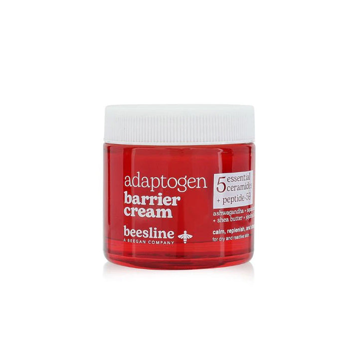 Beesline Adaptogen Barrier Cream soothes dry, reactive skin while strengthening the barrier with ceramides and nourishing oils to lock in moisture for a calmer, healthier complexion.