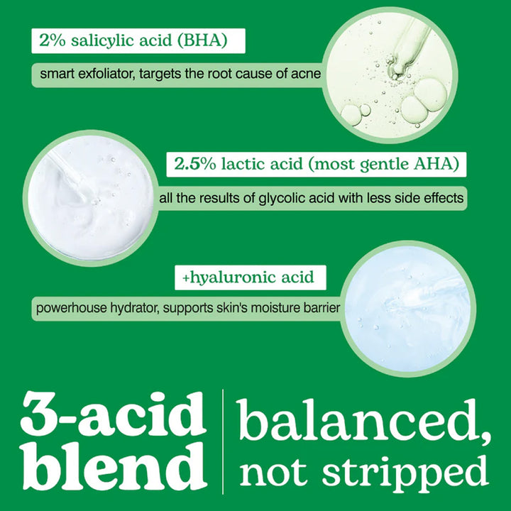 Achieve your clearest skin yet. Our Sebum-control Balancing Serum is powered by 2% salicylic acid, the best BHA for oily and acne-prone skin, and 2.5% lactic acid, the most gentle AHA, highly effective at fading acne scars. It unclogs pores and reduces the look of blemishes, while soothing and hydrating the skin. For a balanced complexion, without strpping. Visible results in 2 weeks.