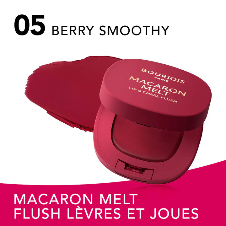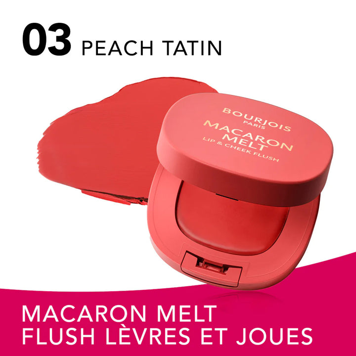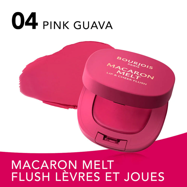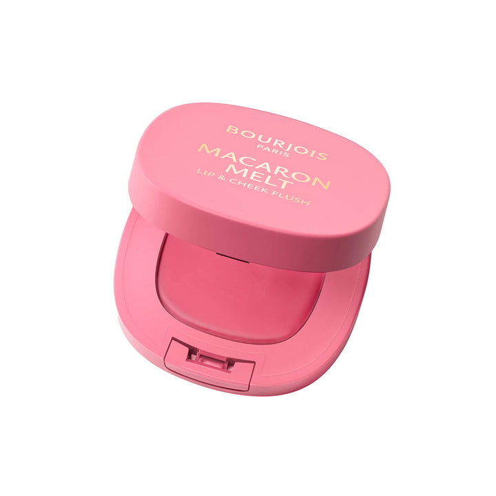 Bourjois Macaron Melt is a dual-purpose cream-to-powder lip and cheek flush that delivers a matte, blurred finish with buildable colour.