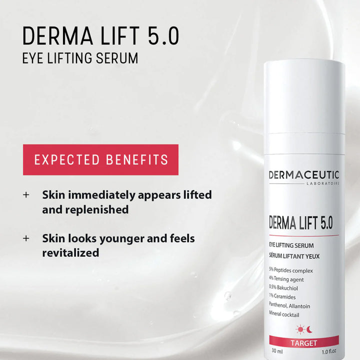 Derma Lift 5.0 is formulated for an immediate lifting effect combined with long-term peptide skin-boosting action. Its synergy of ingredients improves the appearance of free radical damage and the signs of skin aging.