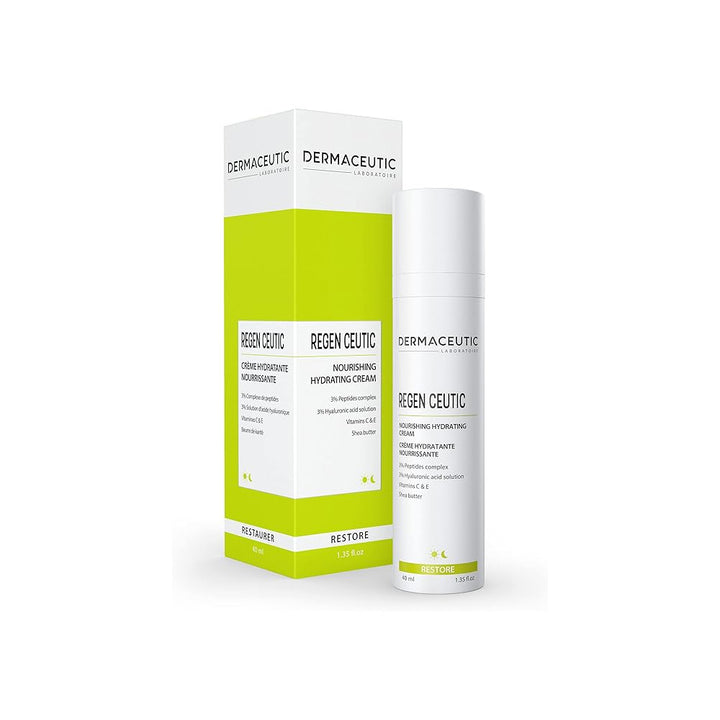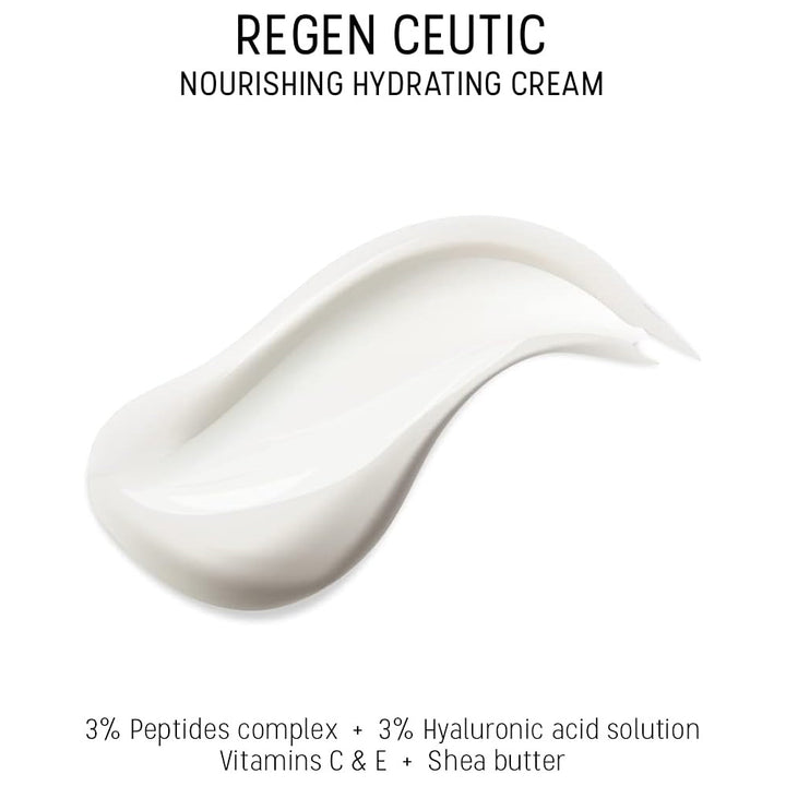 Regen Ceutic nourishes and firms the skin thanks to its peptides complex. The addition of hyaluronic acid and powerful antioxidants boosts the skin's natural power to protect and repair itself. Prevents signs of skin aging.