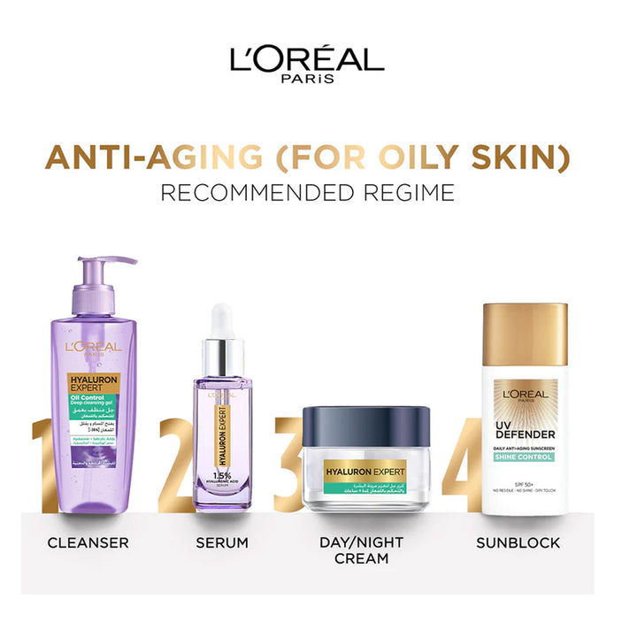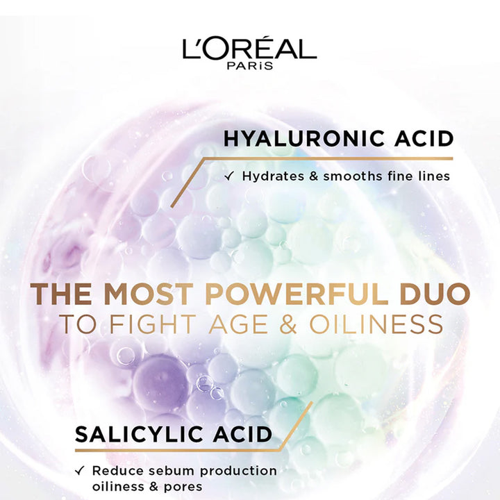 Developed by L'Oréal Paris laboratories for combination to oily skin with Dual Anti-Aging + Anti-Oil Action.