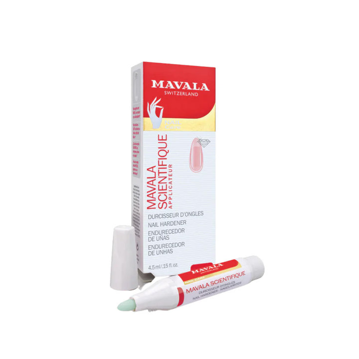 MAVALA SCIENTIFIQUE K+ Applicator hardens the nail plate thanks to a scientific active ingredient that improves the cohesion of keratin fibers thus allowing the three principal nail layers to bond together.