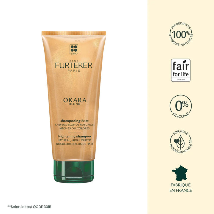 With natural Okara extract, ReflectLumière™ and natural Mica glitter, this gentle, silicone-free shampoo for natural, highlighted or bleached blonde hair, restores luminosity and revives the radiance of blonde hair.