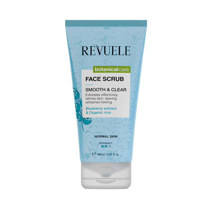 Revuele Face Scrub Smooth & Clear is a botanical exfoliant for normal skin that gently removes dead skin cells and impurities, enriched with blueberry extract and organic rice to reveal a smoother, clearer, radiant complexion.