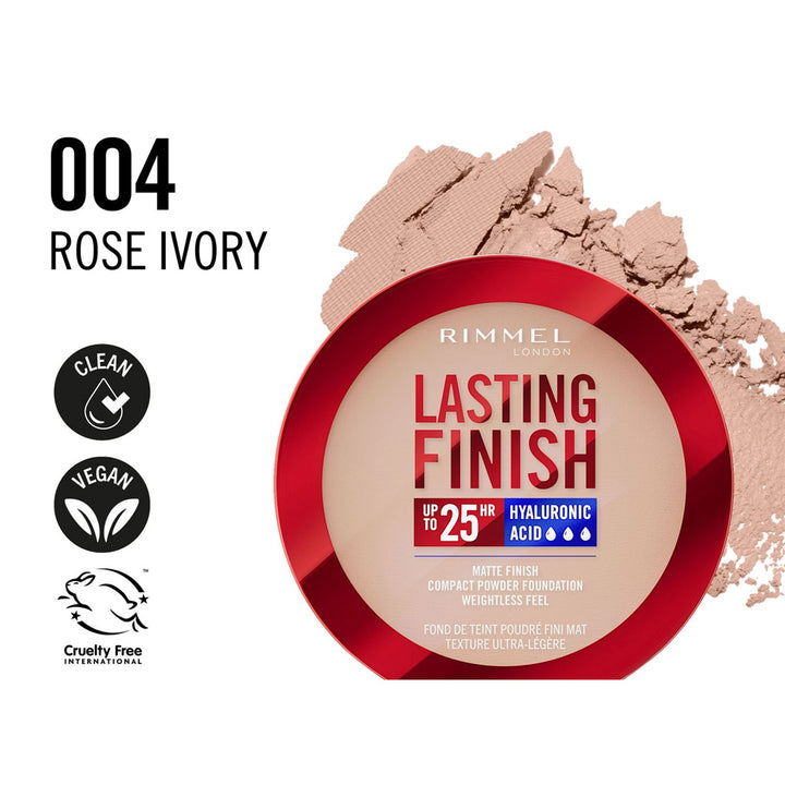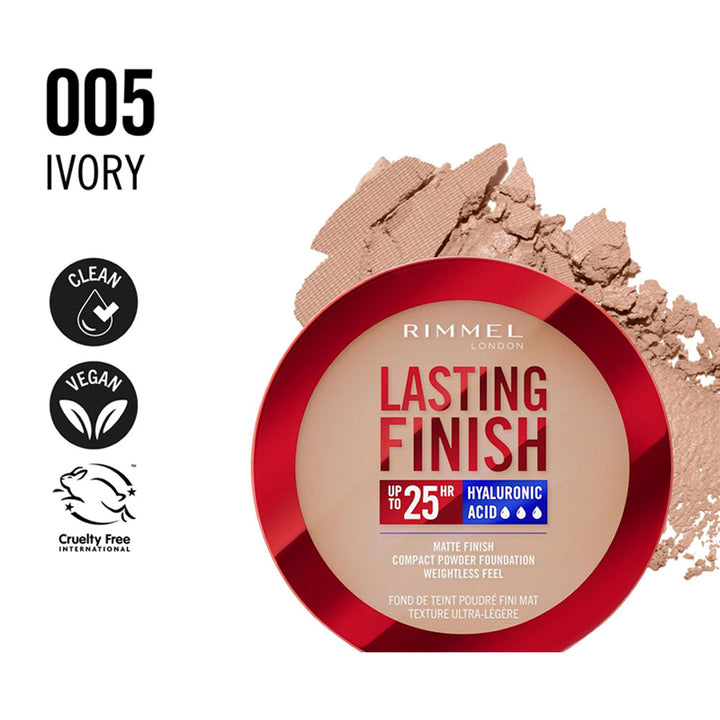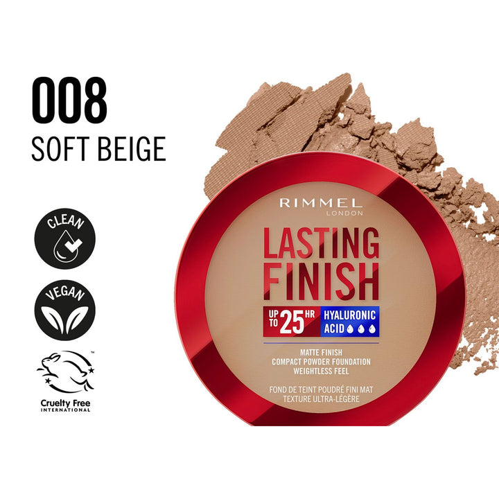 Rimmel Lasting Finish Compact Powder foundation blends, blurs and boosts with a real skin soft-focus finish. The full-coverage, hybrid formula of this vegan foundation has a matte finish for up to 25HR long-lasting wear and all-day oil control. • Blends, blurs and boosts with a real skin soft-focus finish for up to 25HR wear and all-day oil control • Full-coverage, hybrid formula with a velvety powder-to-cream texture • Absorbs excess oil & covers any imperfections whilst blending seamlessly with skin • The anti-pollution shield & UV booster help to protect the skin as it perfects while Hyaluronic Acid ensures it feels non-drying • Available in 16 flexible shades, with SPF20, cruelty-free and vegan formula