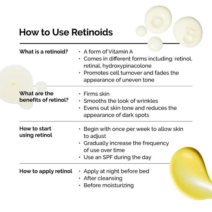 The serum-textured formula is suitable for all skin types, and is recommended for experienced users of retinoids. If you are new to using retinoids, we recommend exploring the Granactive Retinoid 2% Emulsion, or the Retinol 0.2% in Squalane, and progressing to higher strengths as your skin builds tolerance. For more tips on how to use Retinoids, be sure to explore our Retinoid Guide.